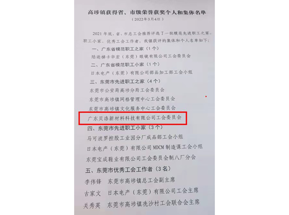 貝洛新材榮獲“東莞市先進(jìn)職工之家”稱號(hào)