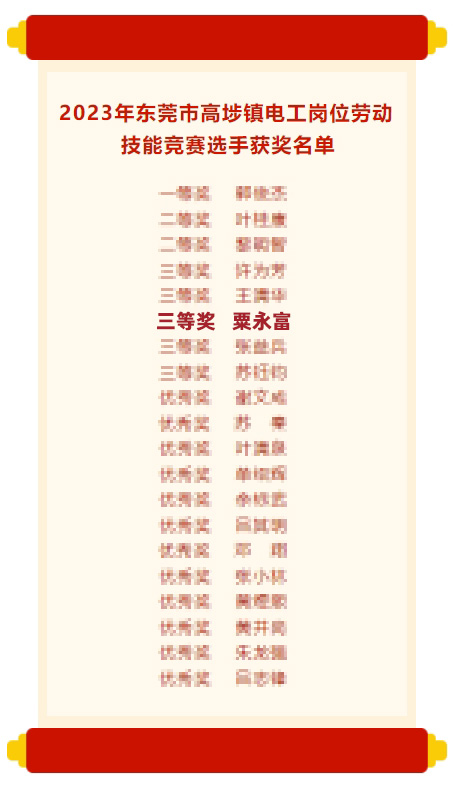 熱烈慶祝貝洛新材員工粟永富獲東莞市職工技術(shù)標(biāo)兵及高埗鎮(zhèn)電工競(jìng)賽獎(jiǎng)項(xiàng)榮譽(yù)!