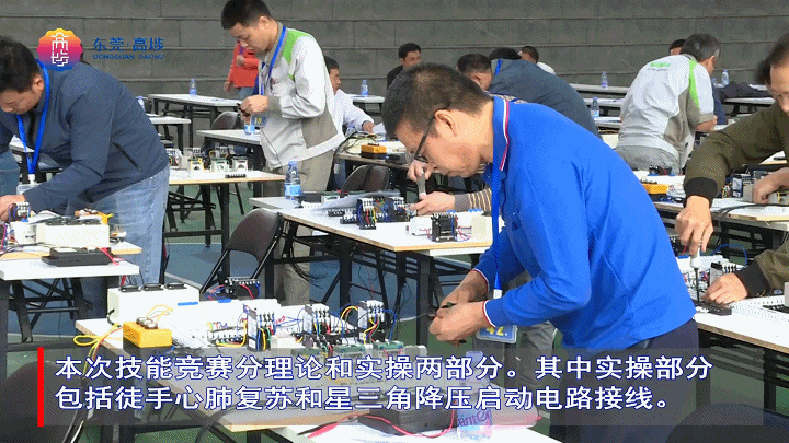 此次電工技能競(jìng)賽分理論和實(shí)操兩部分。理論知識(shí)為閉卷筆試,考核參賽選手的電工專業(yè)基礎(chǔ)知識(shí)、安全操作規(guī)程等內(nèi)容;實(shí)操部分為在規(guī)定時(shí)間內(nèi)完成輪流進(jìn)行徒手心肺復(fù)蘇和星三角降壓啟動(dòng)電路接線兩項(xiàng)技能比拼。