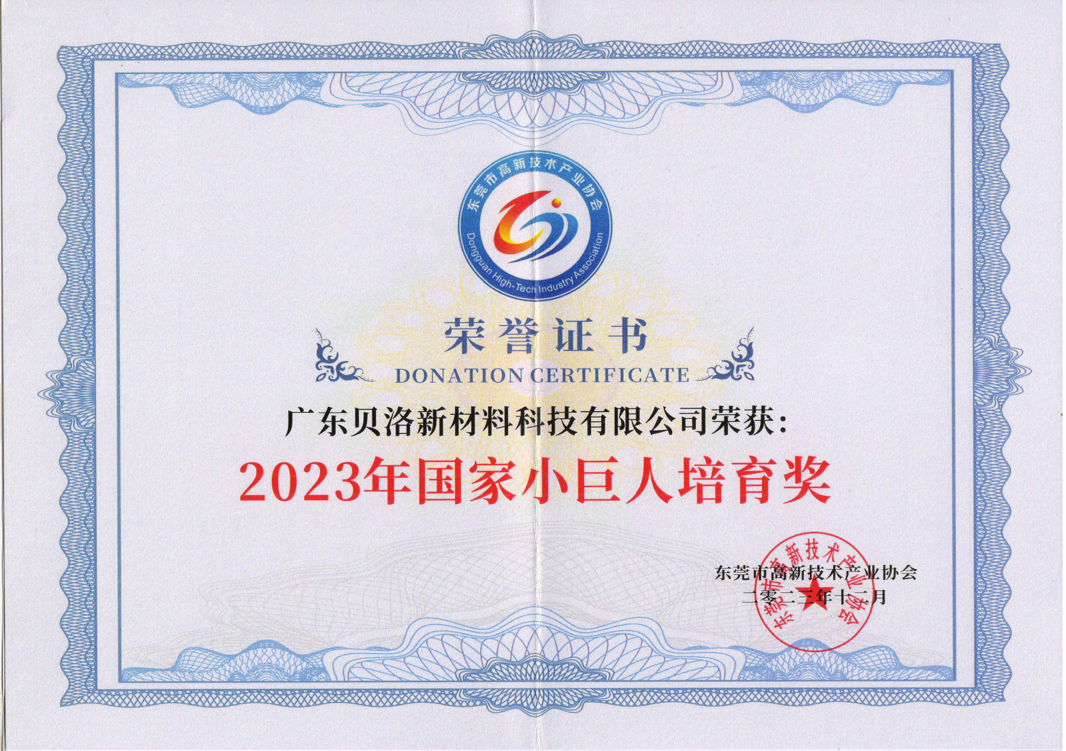 貝洛新材榮獲東莞市高新技術(shù)產(chǎn)業(yè)協(xié)會頒發(fā)的