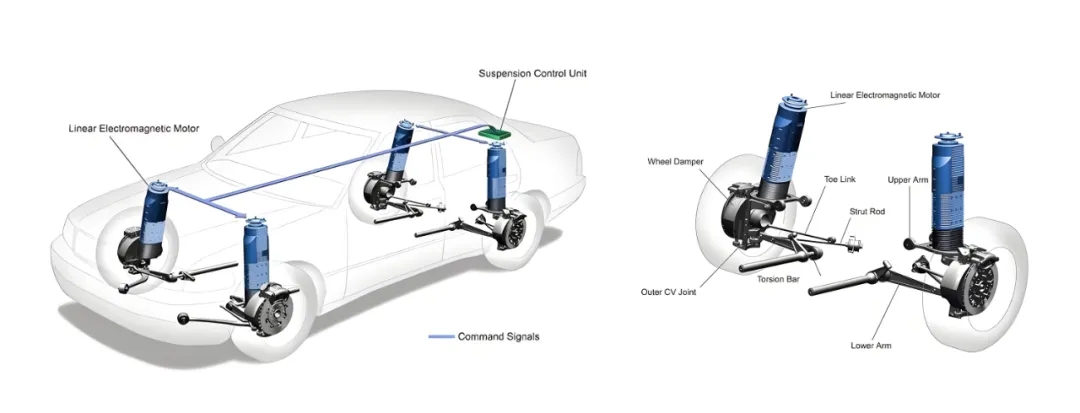 采埃孚和大眾集團聯(lián)合研發(fā)了一種能夠?qū)崿F(xiàn)車身姿態(tài)主動控制的電磁式作動器。該系統(tǒng)采用12V電源供電,輔以傳統(tǒng)的阻尼器,相較于液壓作動器,具有更高的性價比和較低的系統(tǒng)能耗。