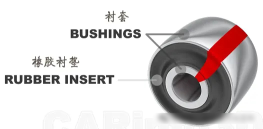 橡膠襯套由兩層金屬襯套組成,內(nèi)部嵌入橡膠襯墊,是一種常見的連接元件??刂票邸⑴ちα汉蜏p震器等的固定都依賴于這種部件。