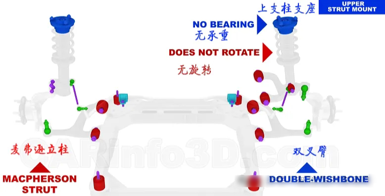 有些部件可能有多種用途,如麥弗遜懸架系統(tǒng)中的立柱可以作為減震器和控制臂。