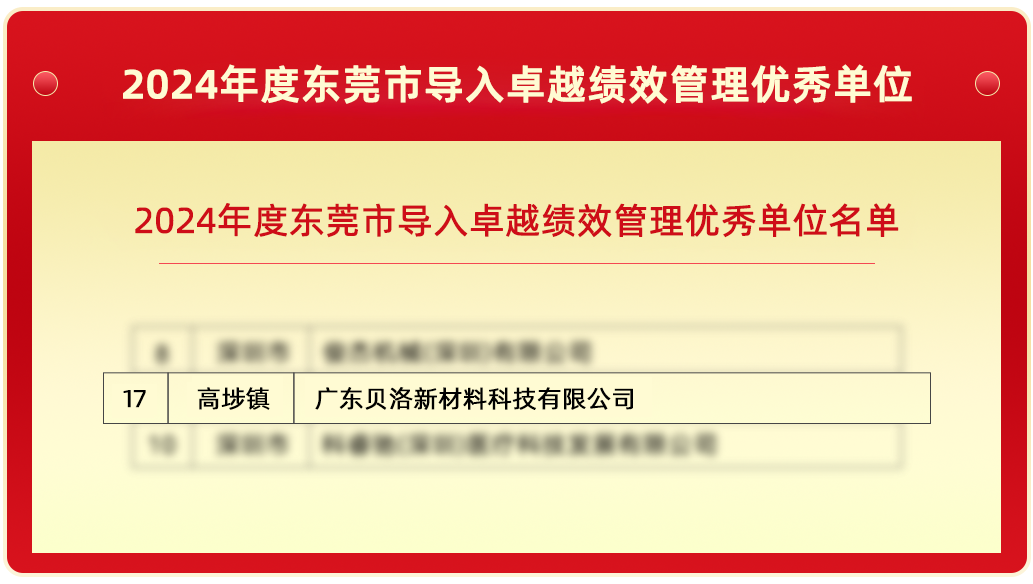 貝洛榮獲“2024年度東莞市導(dǎo)入卓越績(jī)效管理優(yōu)秀單位” 稱號(hào)