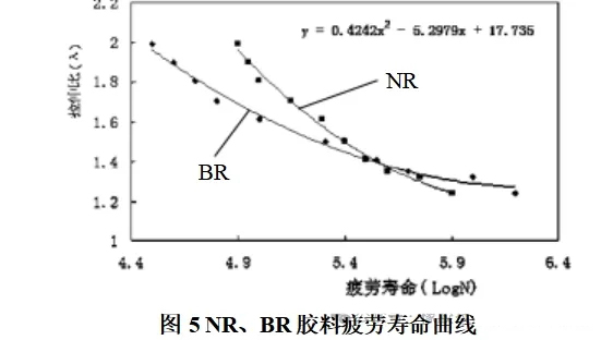 NR與BR在不同應(yīng)變幅度下的疲勞特性比較:NR和BR都容易在動(dòng)態(tài)形變下產(chǎn)生裂口。但在大形變下,NR會(huì)因結(jié)晶而提高疲勞壽命;而在小形變下,BR因其分子鏈柔順性好而表現(xiàn)出更長的疲勞壽命。因此,在輪胎胎側(cè)等應(yīng)變較大的部位,應(yīng)增加NR的用量;而在帶束層等應(yīng)變較小的部位,則應(yīng)增加BR的用量。橡膠硅膠材料密封圈