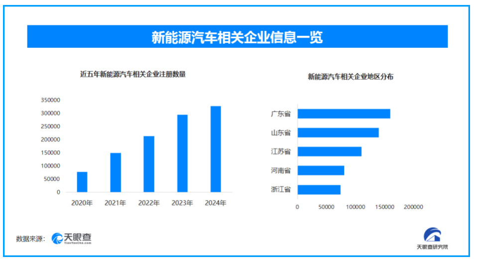 從區(qū)域分布來看,廣東省、山東省、江蘇省的新能源汽車相關企業(yè)數量位居全國前列,三省市企業(yè)數量總和超過41萬家,占企業(yè)總數的27.5%。