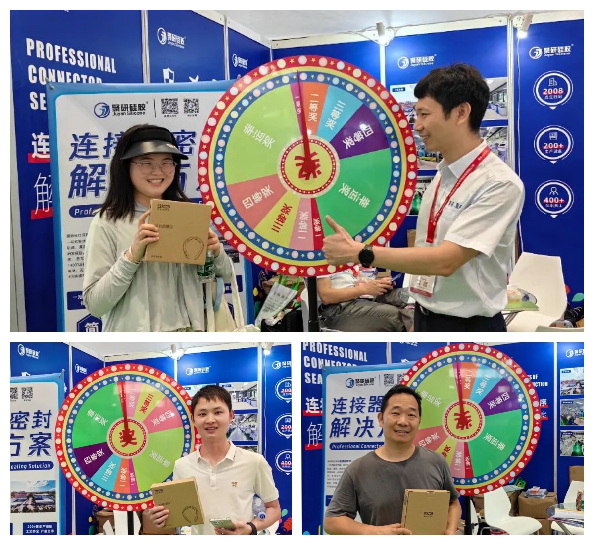 與此同時,聚研硅膠憑借著對連接器一站式解決方案服務的過硬實力,征服了行業(yè)一眾合作伙伴,各知名企業(yè)對與聚研的充滿信心,紛紛踴躍交換信息,尋求合作并參與到現(xiàn)場的抽獎活動中。