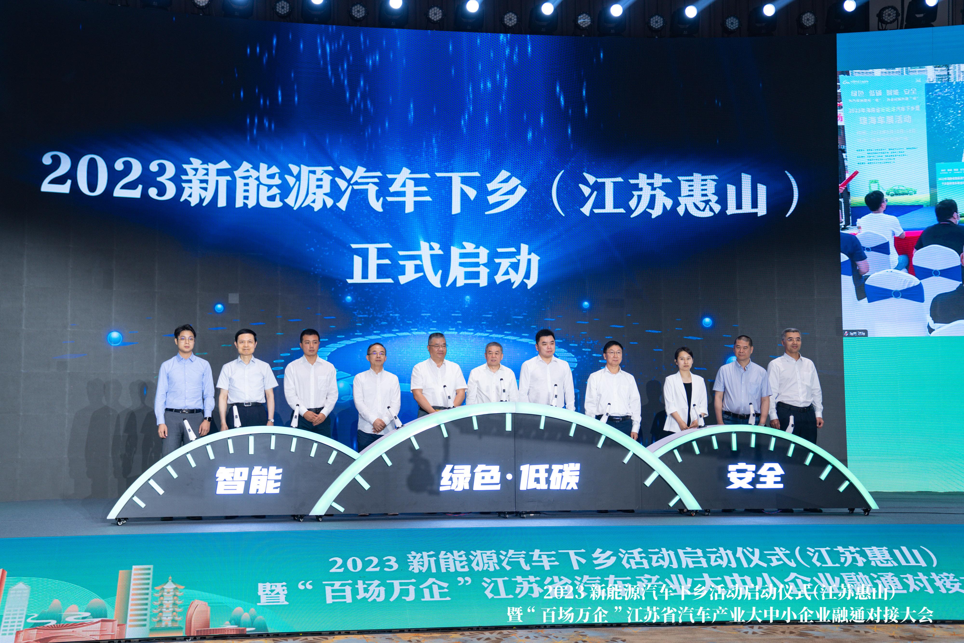 2023-06-19 10:06:112023年6月16日上午,在無錫惠山舉行了新能源汽車下鄉(xiāng)活動(dòng)啟動(dòng)儀式(江蘇惠山)暨“百場(chǎng)萬企”江蘇省汽車產(chǎn)業(yè)大中小企業(yè)融通對(duì)接大會(huì)。這次活動(dòng)旨在為汽車消費(fèi)充電,為鄉(xiāng)村振興添綠色。