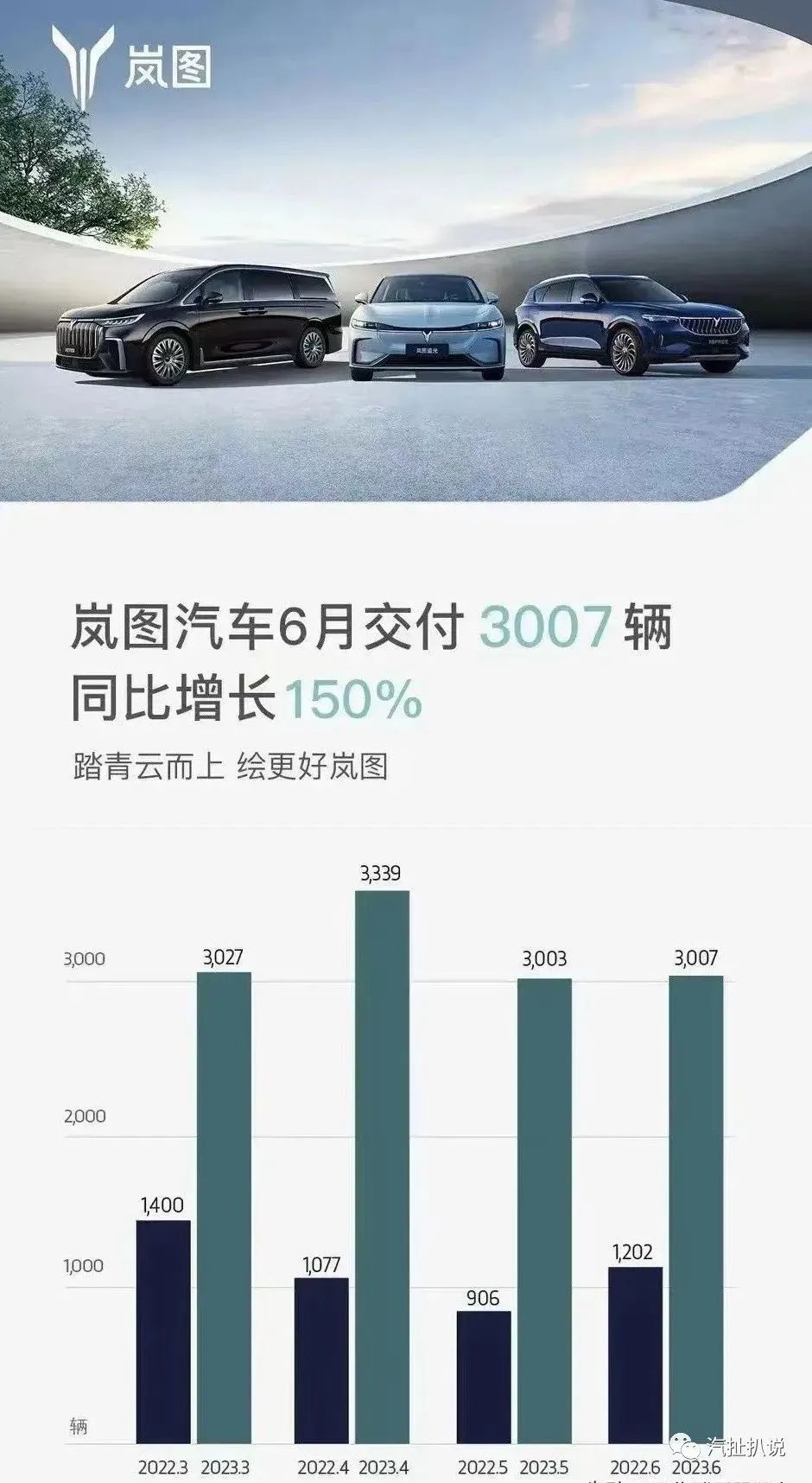 7月1日,嵐圖汽車公布了最新交付數(shù)據(jù)。2023年6月嵐圖交付新車3007輛,同比增長150%。嵐圖汽車自3月份以來連續(xù)四個月保持月銷量超過3000輛。