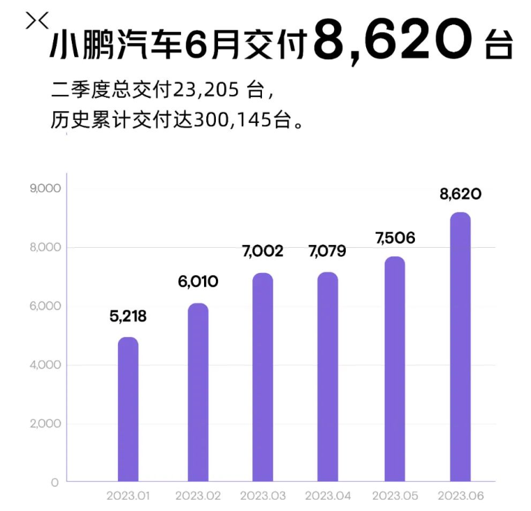 小鵬汽車6月共交付新車8,620輛,環(huán)比增長15%,連續(xù)5個月實現(xiàn)正增長,但同比下滑44%。小鵬新車G6已經正式上市,官方公布的數(shù)據(jù)顯示,截至28日,G6預售訂單量已突破3.5萬臺,將于本月正式啟動交付。