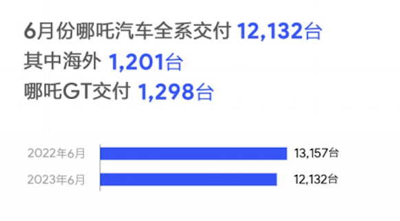 哪吒汽車6月全系交付12,132輛,其中,海外1201輛,哪吒GT交付1,298輛。哪吒汽車6月銷量環(huán)比下滑6.9%,同比下滑7.8%,是目前已公布銷量數(shù)據(jù)的車企中唯一同環(huán)比均下滑的。