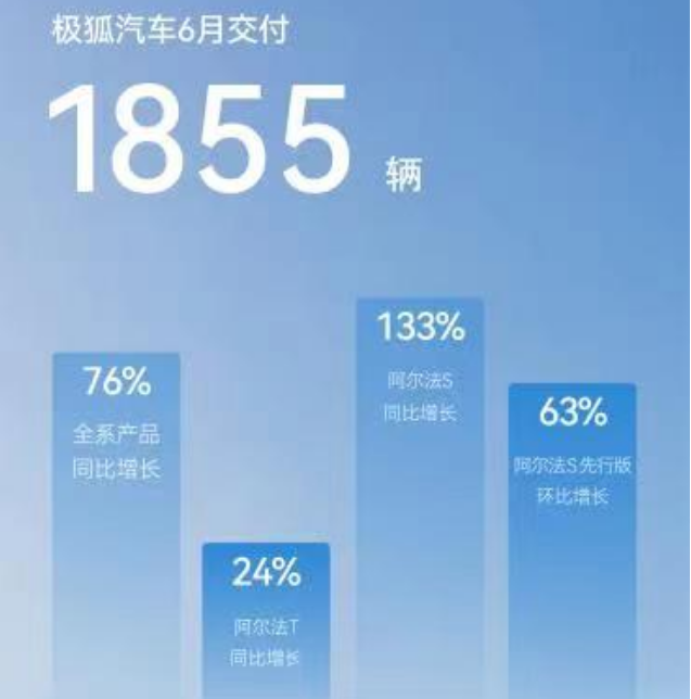 極狐汽車6月共交付新車1,855輛,環(huán)比增長1.7%。近四個月極狐汽車銷量都在2000左右,1-6月銷量總計8,791輛,極狐汽車未在公開渠道公布2023年銷量目標,其2022年銷量目標為4萬輛,對照今年上半年的銷量,完成度為22%。