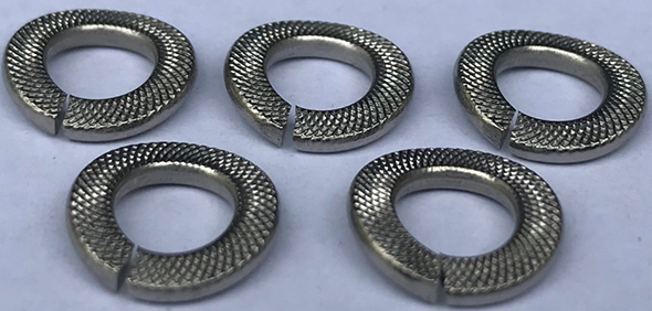 早期為了解決這個問題,彈簧墊圈就出現(xiàn)了。彈簧墊圈由于有預張力,在螺母壓緊彈簧墊圈后,在預張力的作用下,螺母內三角形的螺扣與螺栓三角形的螺扣的一側,就緊緊的貼在一起,在摩擦力的作用下,螺母就不再出現(xiàn)松動的情況了。